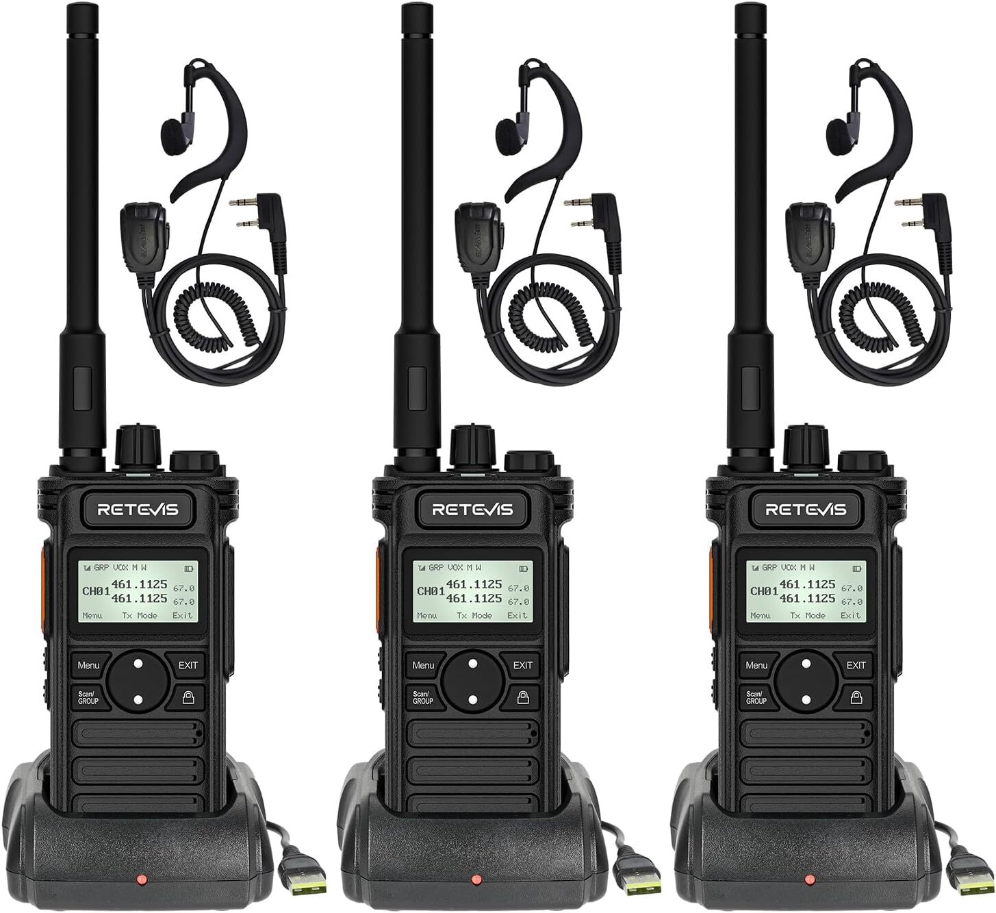 Retevis RT668 Talkie Walkie Professionnel, Rechargeable Talkie Walkie avec Oreillette, Robuste Radio Bidirectionnelle, VOX, USB, PMR Talki Walki Longue Portée pour Famille, Camping (1 Paire)