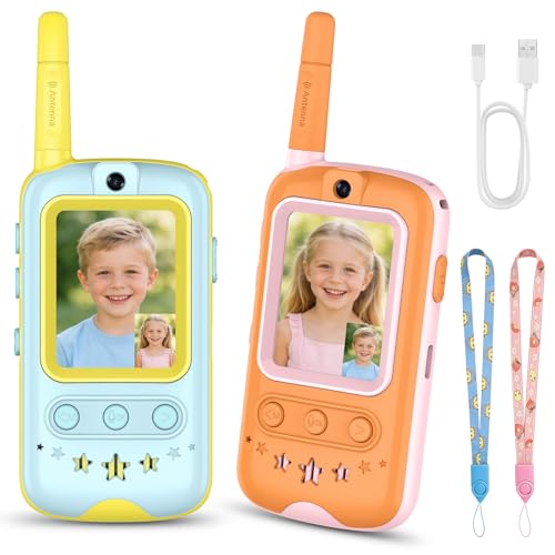 Walkie Talkie Enfant Vidéo, Lot de 2 Talkie-Walkie pour Enfant Rechargeable avec Caméra HD, Longue Portée, Jouet Cadeau Garçons et Filles 3-10 Ans (Bleu/Rose)