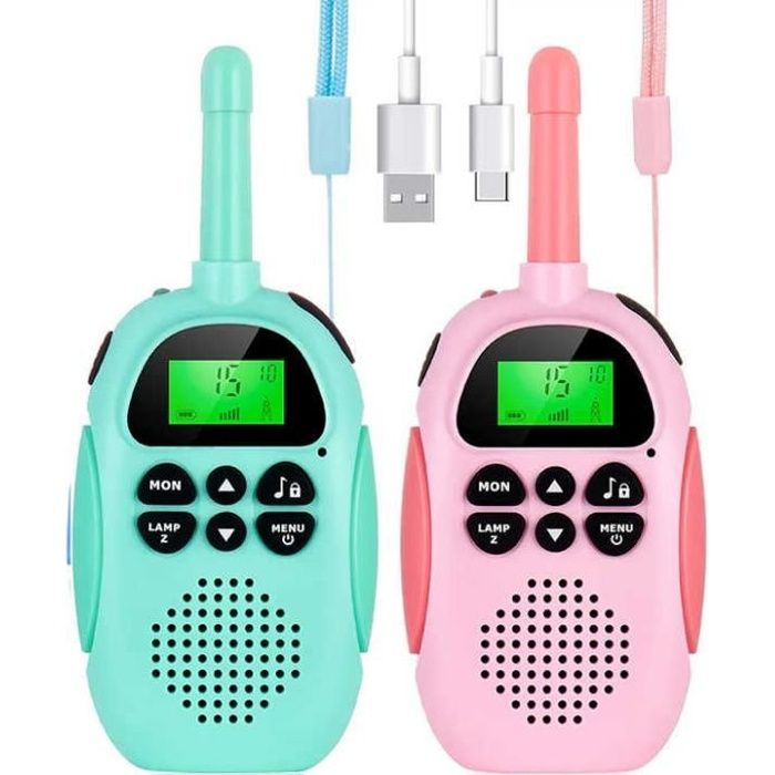Talkie Walkie Enfants Rechargeable 2 pièces, NXGKET Cadeau Garcon Fille 3 4 5 6 7 8 9 10 Ans, Jouet Enfant 3-12 Ans,avec Batteries intégrées Câble USB-C,pour Camping Jeu d'Aventure Randoneé