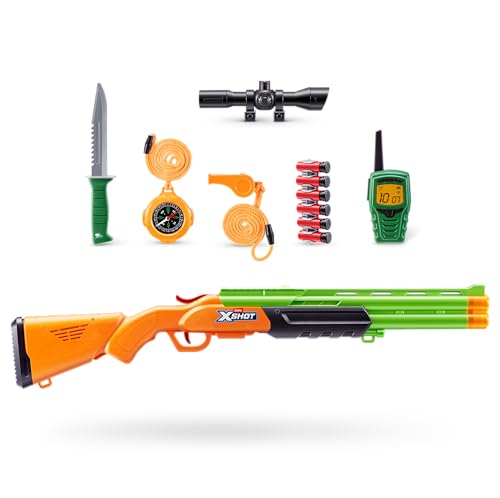 XSHOT Role Play Big Hunter de ZURU – Kit d'exploration avec Blaster Non-Fonctionnel, 6 munitions éjectables, Couteau, Talkie-walkie, Boussole et sifflet, Jouet d'aventure pour Enfants 5+
