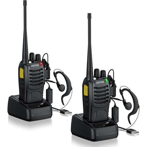 eSynic 2pcs Talkies-Walkies Longue Distance avec Microphone et Écouteurs Talkie Walkie Rechargeable Radio Bidirectionnelle 16 Canaux 1500 mAh Cryptage Numérique Analogique Fonction VOX Chargeur USB