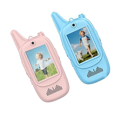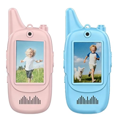 Domary Talkie Walkie Vidéo pour Enfants Vidéo Rechargeable Radios Bidirectionnelles Jouets pour Garçons Filles Communication Longue Distance Jeu en Plein Air ABS 2 Pack