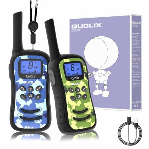QUOLIX Talkie Walkie pour Enfants, Rechargeables Talkies-Walkies 2 Voies Longue Portée 8 Canaux avec Fonction Vox, Cadeau pour Filles Garçons de 3 à 12 Ans (Camouflage_Bleu+Vert)