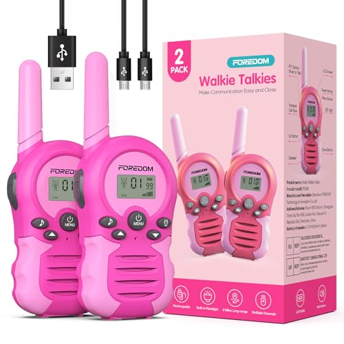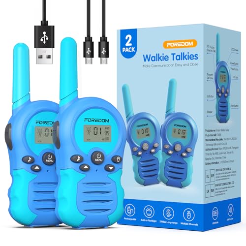 FOREDOM Talkie Walkie Enfants Rechargeable, Talkie-Walkie Longue Portée pour Garçons & Filles de 3-12 Ans, Cadeaux Aventure Plein Air, Lot de 2