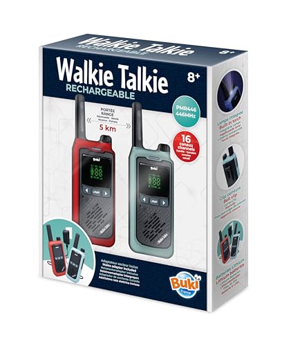 Talkie-Walkie Rechargeable Longue Portée 5 km – Lot de 2 avec Batteries Lithium et Chargeur Double – 16 Canaux, Lampe, Clip Ceinture – Conversations Claires – Enfant & Adulte dès 8 Ans - BUKI France