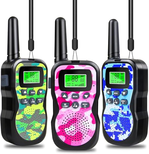 JUAUO 3PCS Talkie Walkie Enfants Rechargeable, 8 Canaux Radio à 2 Voies Talkie-Walkie Longue Portée 3 KM, Cadeaux d'anniversaire pour Garçons Filles, Jouets de Plein air pour Enfants de 3 à 12 Ans