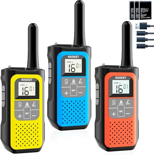 NXGKET Talkie Walkie pour Adulte et Enfant, 3 Talkies-Walkies Longue Portée 5 km, Radios Bidirectionnelles Rechargeables, 16 Canaux, VOX Fonction, Toki Walki pour Camping, Activités de Plein air
