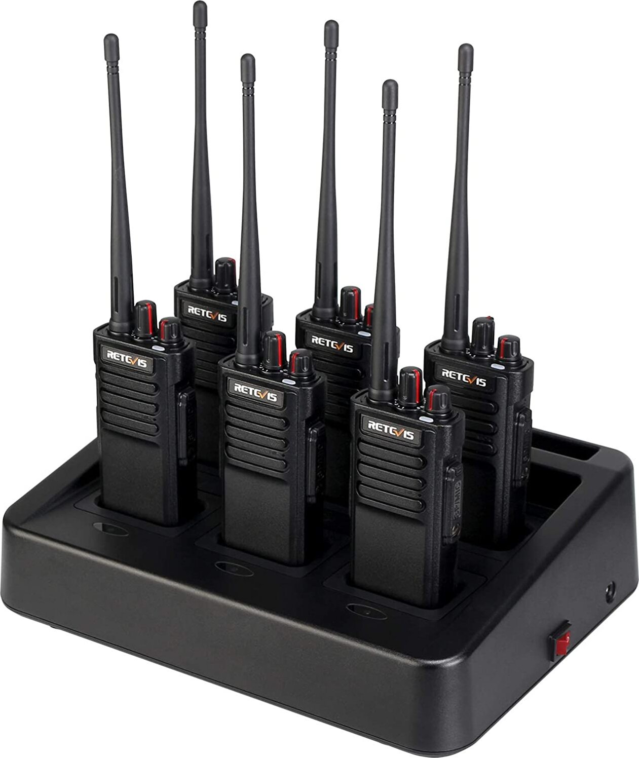 Retevis RT29 Talkie Walkie Professionnel, Rechargeable Talkies Walkies Longue Portée avec Chargeur à Six Voies, 3200 mAh, 16 Canaux, VOX, Radio Portable pour Les Industriels (6 Pièces, Noir)