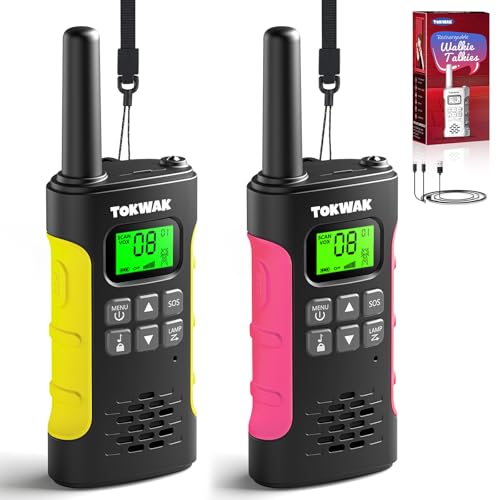 Tokwak Talkie Walkie Longue Portée Rechargeable par USB C, Paire de Talkie-Walkie Enfants Adultes 16 Canaux VOX Lampe Torche, Walkie Talkie PMR446 Batterie Li-on pour Camping, Randonneé, Vélo, Fêtes