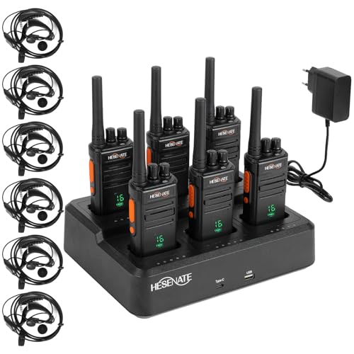 HESENATE HT66 Plus Radio Set Display PMR446 sans Licence Woki Toki Talkie-walkie Longue portée Radio Professionnelle 16 canaux Portable Woki Toki (Noir, Lot de 6) (avec Chargeur 6 emplacements)