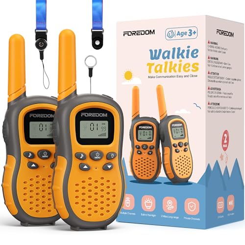 FOREDOM Talkie Walkie Enfants, Talkie-Walkie Longue Portée pour Garçons & Filles de 3-12 Ans avec Lampe, Cordons, Lot de 2 - Orange