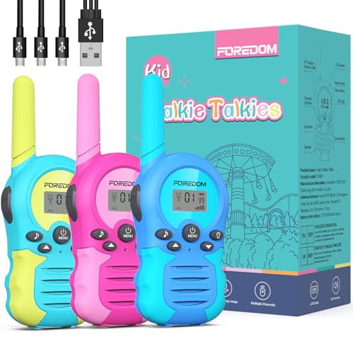 FOREDOM Talkie Walkie Enfants Rechargeable, Talkie-Walkie Longue Portée pour Garçons & Filles de 3-12 Ans, Cadeaux Aventure Plein Air, Lot de 3