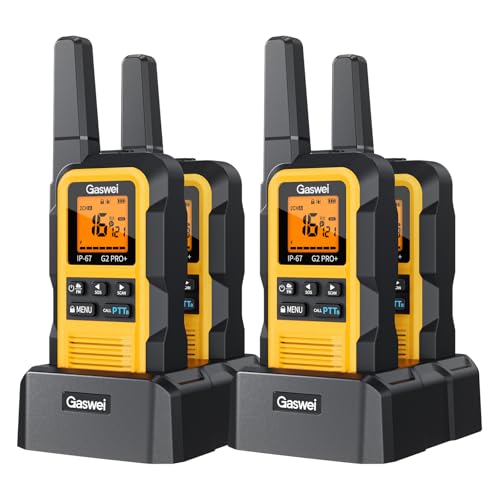 Talkies-Walkies Professionnels Gaswei G2Pro pour Adultes [Étanchéité IP67 et flottabilité] Radio bidirectionnelle Longue portée avec Double PTT, Alarme SOS, Radio FM. (4er-Pack Gelb)