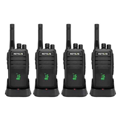 Retevis RT21H Talkie Walkie, Radio Bidirectionnelle Résistante à l'eau IP54 Écran Robuste et Discret USB-C Talkies-Walkies Longue Portée Faciles à Utiliser pour Usines, Industrie (4 pièces,Noir)
