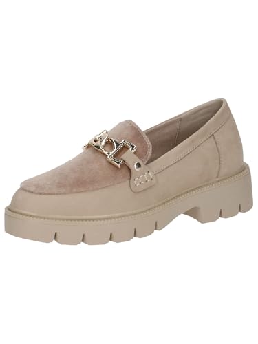 CAPRICE Mocassins Femme en Cuir à Talon Bloc, Beige (Beige Nubuc), 37 EU