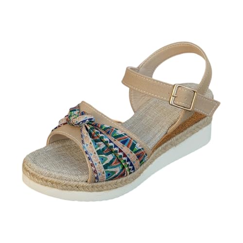 Chaussures Femme Compensees D Ete Nu Pied Chaussures de Sandales Zapatillas Original Décontracté Marche Compensées Sandales à Talons Été Compensées Confort Femme (Beige 42)