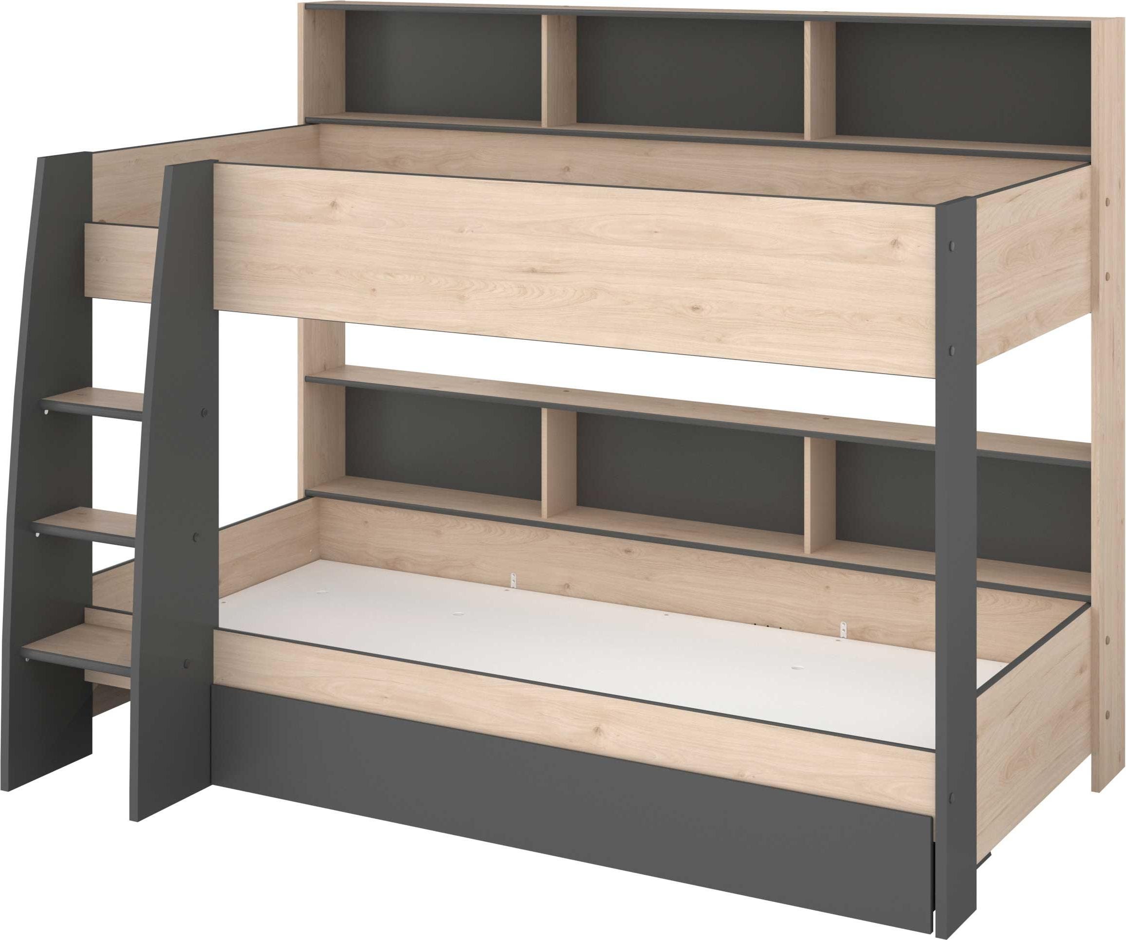 Lit superposé Tam-Tam 31 avec tiroir de lit gris + tiroir de lit Lit adolescent Parisot