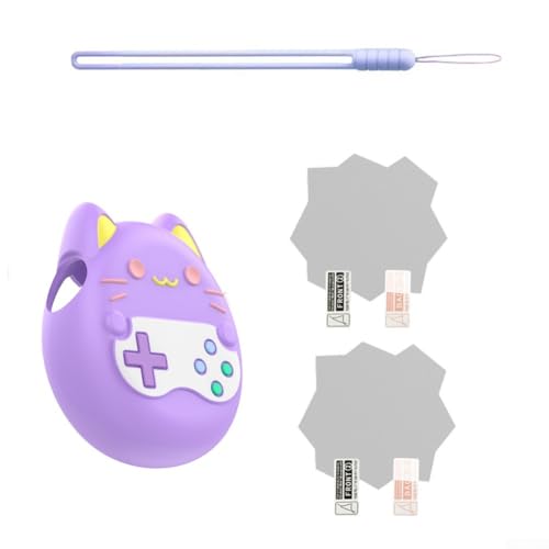 Jonikuper Coque en silicone avec lanière et film de protection d'écran pour Tamagotchi Connection Virtual Pet - Violet