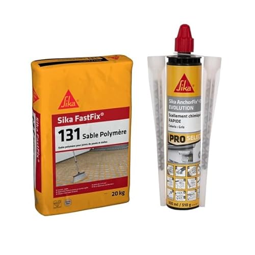 SIKA - Sable polymère pour remplissage des joints de pavés et dalles - Application facile -Sable - 20kg + Scellement chimique à prise rapide - Fixation d'objets lourds - Int/Ext - Ton pierre - 300ml