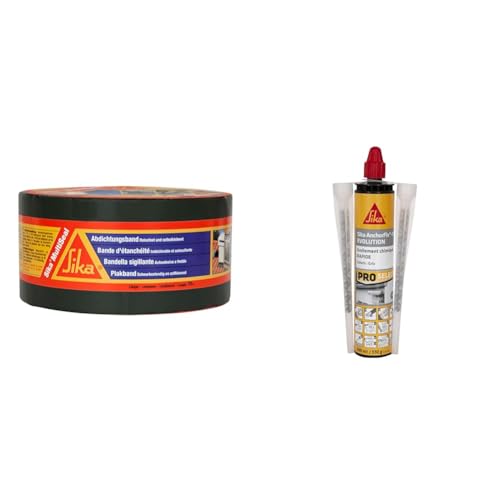 SIKA Bande d'étanchéité autocollante résistante à la déchirure, Aluminium, Gris, 75 mm x 10 m & AnchorFix 01 Evolution, Gris, Scellement chimique à prise rapide pour fixation d'objets lourds