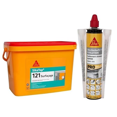 SIKA - Mortier pour imperméabilisation, réparation et collage - Kit prédosé bicomposant 10,7kg - Gris + Scellement chimique à prise rapide - Fixation d'objets lourds - Int/Ext - Ton pierre - 300ml