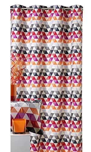 Home Maison - Rideau d'Ameublement Motifs Triangles - 100% Polyester - Tamisant & Graphique - 8 Œillets Ø 4 cm - Salon Chambre Cuisine - Orange - 140 x 260 cm