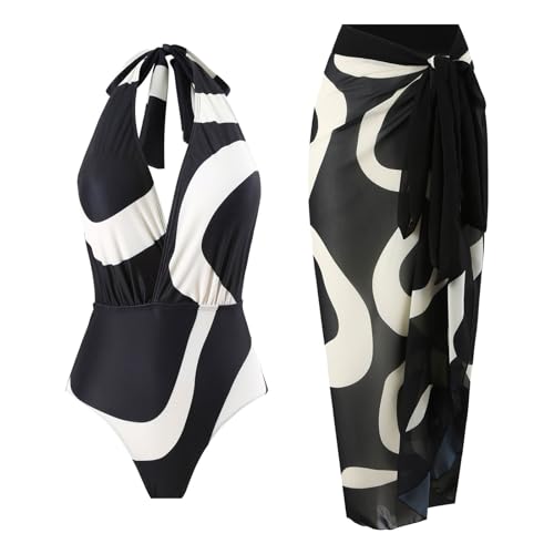 Générique Maillot Bain Femme 1 Piece, Maillot De Bain Femme Tankini Ventre Plat Amincissant Push Up Swimwear Chic Slim Rembourré Dos Nu Lace Up Imprimé Col V Halter Monokini Plage