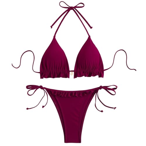 Ensembles Bikini Sexy Femme Dos Nu, Maillot De Bain Femme 2 Pieces,Tankini Femme à Nouer Couleur Unie DéContractéS Triangle avec Bretelles Spaghetti Swimwear Set pour Vacances à La Plage Beachwear