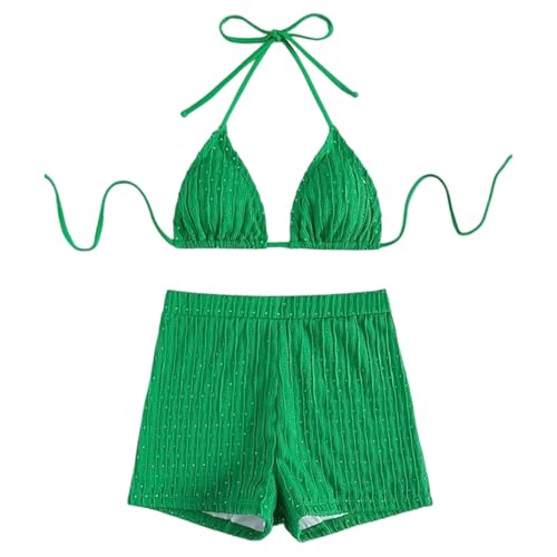 éTé Bikini,Maillots De Bain Femme,Maillot de Bain Deux pièces Tankini imprimé avec Shorty (Black, M)