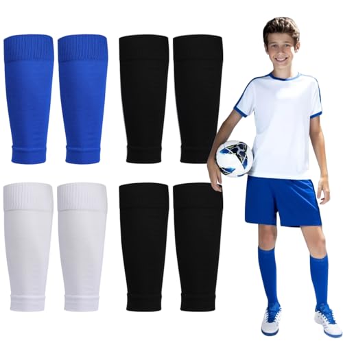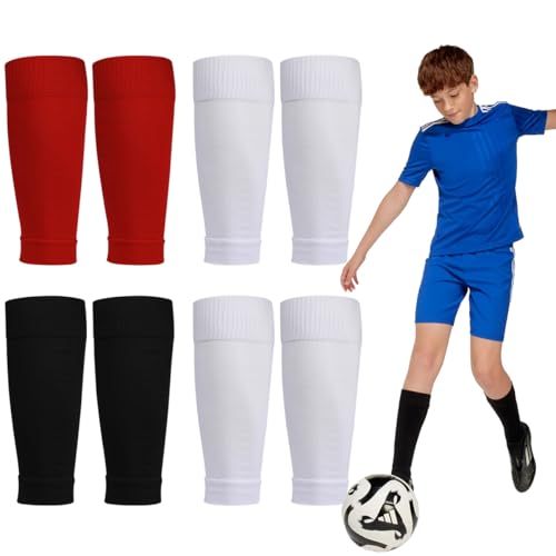 CBHTMY 4 paires de chaussettes de football pour enfants, chaussettes de football pour enfants, design tape, manches, tube, chaussettes sans chaussettes, chaussettes de sport, chaussettes