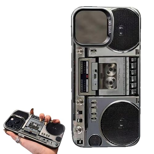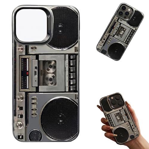 Générique Retro Boombox Cassette Player Pattern Phone Case,Vintage Cassette Tape Design Wear-Resistant Drop-Resistant Phone Case,for iPhone 17/16/15/14/13/12 Pro Max