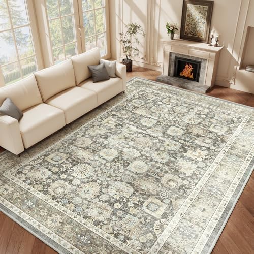 HOMFINE Gris Tapis Salon Vintage 300x400 cm Lavable en Machine Antidérapant Grand Tapis Salon Doux Poil Court pour Chambre Adulte, Salle à Manger, Cuisine