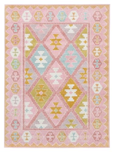 RugVista Margerita Tapis intérieur/extérieur, 300x400 cm, Rectangulaire, Poil Court, Lavage à la Main, Salon, Chambre, Patio, Balcon, Terrasse, Jardin, Résiste à l'eau et aux UV, Rose/Multi