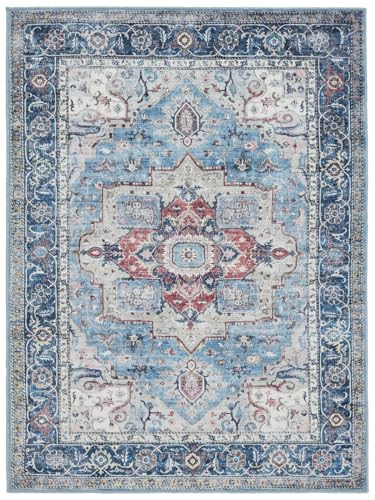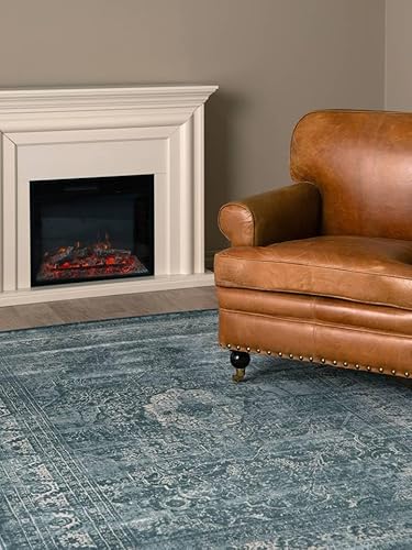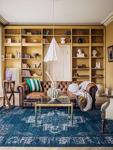 Vamcheer Tapis Salon 300x400 - Grand Tapis Vintage Lavable en Machine pour Chambre Adulte et Salle à Manger, Bleu
