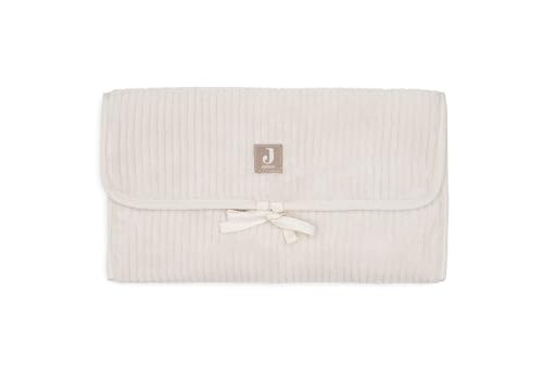 Matelas à Langer Nomade Jollein Cloudy Rib - Oatmeal - Avec Poches et Nœud - Doux et Nettoyable - Tapis à Langer Nomade Idéal pour les Sorties - 71x50 cm