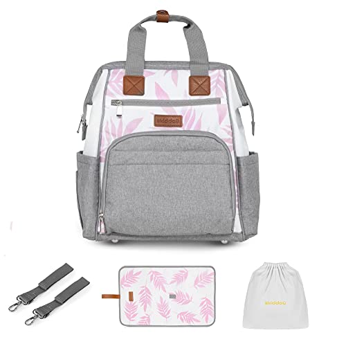skiddoü Sac à Dos pour Poussette Astrid Sac Organisateur 2en1 Sac à Main et Sac à Dos pour Poussette, Sac à Couches, avec Fermeture à glissière, Poches isothermes, Tapis à Langer de Voyage, Gris-Rose