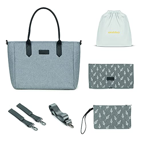 skiddoü grand sac pour poussette d’enfant Ingrid organisateur pour poussette, sac à couches, imperméable, tapis à langer de voyage, sac en coton bandoulière pochette amovible à compartiments gris noir
