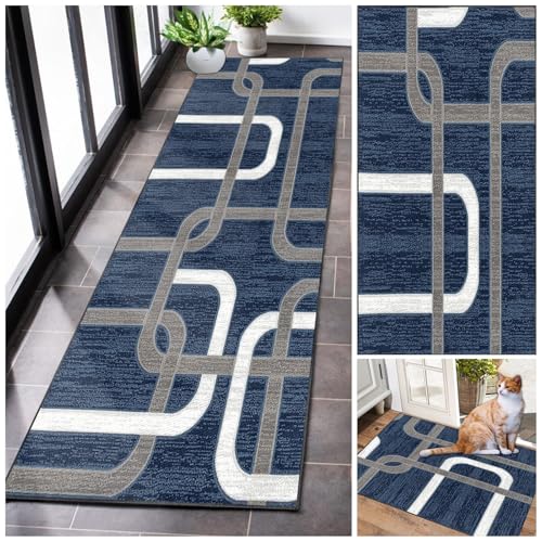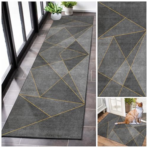 Gzaebji Tapis de Couloir Long Antidérapant Tapis Cuisine Devant Evier Lavable Tapis d Entree Interieur Personnalisable Absorbant Moderne Motifs Géométriques au Metre Tapis Couloir Long 70 x 280 cm