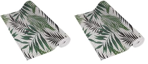 Venilia Venisoft 56806 Tapis en Mousse Souple Uni Feuilles Tropicales Revêtement de Sol antidérapant Tapis de Douche Tapis de Bain Tapis antidérapant PVC Polyester 65 x 200 cm (Lot de 2)