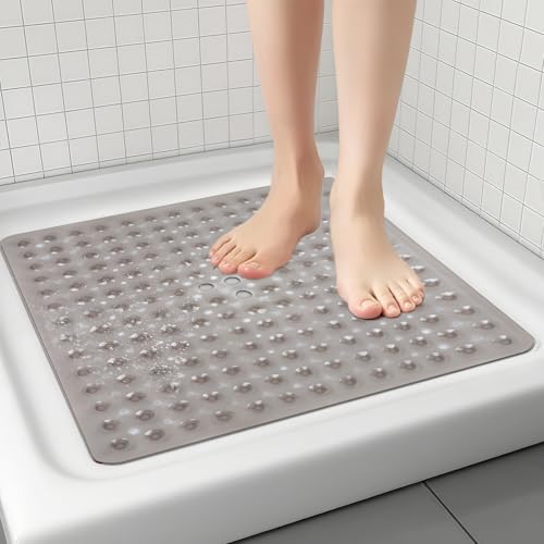 Cozary Tapis de Douche Antidérapant 53x53cm, Tapis de Bain carré antidérapant à ventouses avec Ventouses, Tapis de Douche en PVC Souple pour Sécurité & Confort, Lavable en Machine-Gris