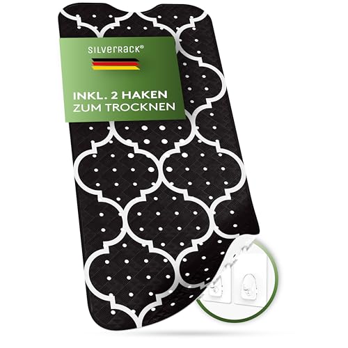 SilverRack Tapis de bain 100x40 cm - Noir - Vinyle - Rectangulaire - Résistant à la moisissure & lavable en machine - Tapis de douche antidérapant sans BPA pour enfants et bébés - Boho