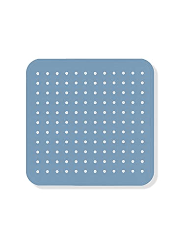 ANSIO® Tapis de Douche antidérapant et Anti-moisissure pour Salle de Bain en Caoutchouc avec Trous de Drainage et ventouses, Lavable en Machine (54 x 54 cm, Bleu Transparent)