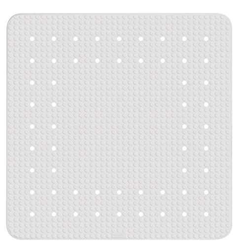 HITSLAM Carré Tapis de Douche Antidérapant, 53 x 53 cm Tapis de Bain, Tapis de Baignoire pour Salle de Bain avec ventouses et Trous d'évacuation, Lavable en Machine, Doux pour Les Pieds, Blanc