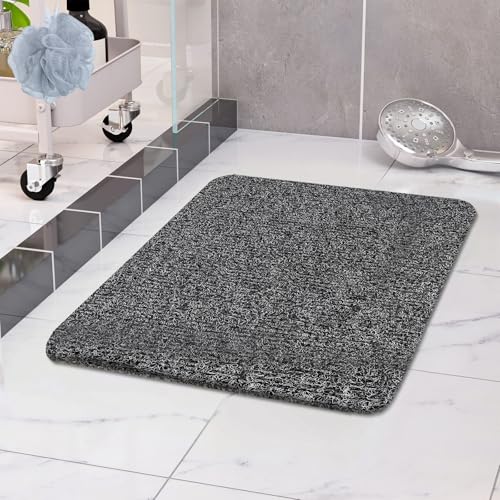 TOSORO - Tapis de Bain en Pierre, Tapis de Douche antidérapant en Terre de diatomée - Séchage Rapide - Tapis de Bain Absorbant - Design élégant et Moderne, Facile à Nettoyer (59,4 x 38,1 cm) - Gris