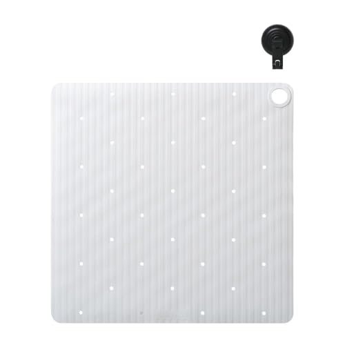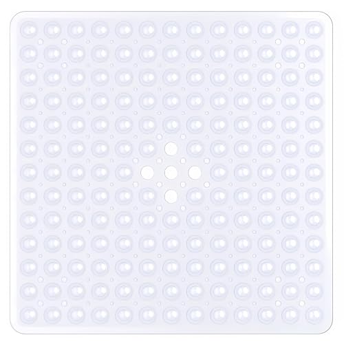 ANSIO® Tapis de Douche antidérapant et Anti-moisissure en Caoutchouc avec Trous de Drainage et ventouses, Lavable en Machine (54 x 54 cm, Transparent)