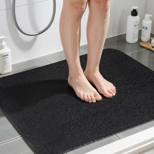 COSYLAND Tapis de Douche Antidérapant 40x60 cm - Tapis PVC Luffa à Séchage Rapide - Surface Antiglisse - pour Salle de Bain - Noir