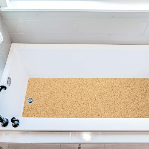 COSYLAND Tapis de Douche Antidérapant 40x100 cm - Tapis de Bain Sécurité Confortable en PVC Luffa - Séchage Rapide avec Trous de Drainage - pour Salle de Bain et Zones Humides - Découpable - Naturel