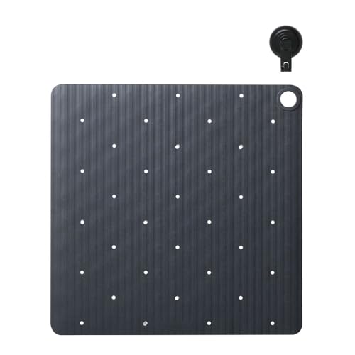 Cozary Tapis de Douche Antidérapant 53x53cm, Tapis de Bain carré antidérapant à ventouses avec Ventouses, Tapis de Douche en PVC Souple pour Sécurité & Confort, Lavable en Machine-Negro