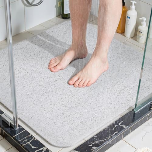 COSYLAND Tapis de Douche Antidérapant 80x80 cm - Tapis de Sécurité en PVC Luffa - Évacuation Efficace de l’Eau - Zones Humides - Gris