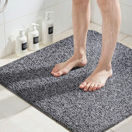 Tapis de Douche antidérapant sans ventouses, 60 x 88 cm, Tapis de Bain pour Surface de Baignoire texturée, Tapis en luffa pour Douche et Salle de Bain, séchage Rapide, Gris